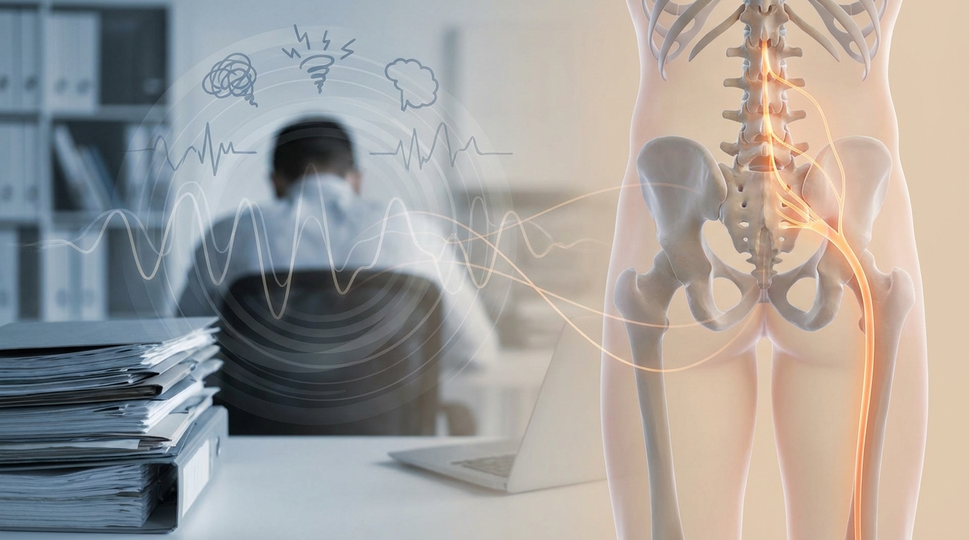 Kiedy żyjemy w permanentnym stresie, nasz organizm nieustannie produkuje hormony takie jak kortyzol i adrenalina. To ewolucyjny mechanizm przygotowujący nas do walki lub ucieczki. Jednym z efektów ubocznych tego stanu jest zwiększone napięcie spoczynkowe mięśni. W przypadku rwy kulszowej szczególną rolę odgrywają mięśnie przykręgosłupowe oraz mięsień gruszkowaty. Jeśli mięśnie te są stale napięte z powodu stresu, mogą wywierać dodatkowy nacisk na strukturę kręgosłupa, prowadząc do przyspieszenia procesów zwyrodnieniowych lub bezpośredniego drażnienia nerwu.